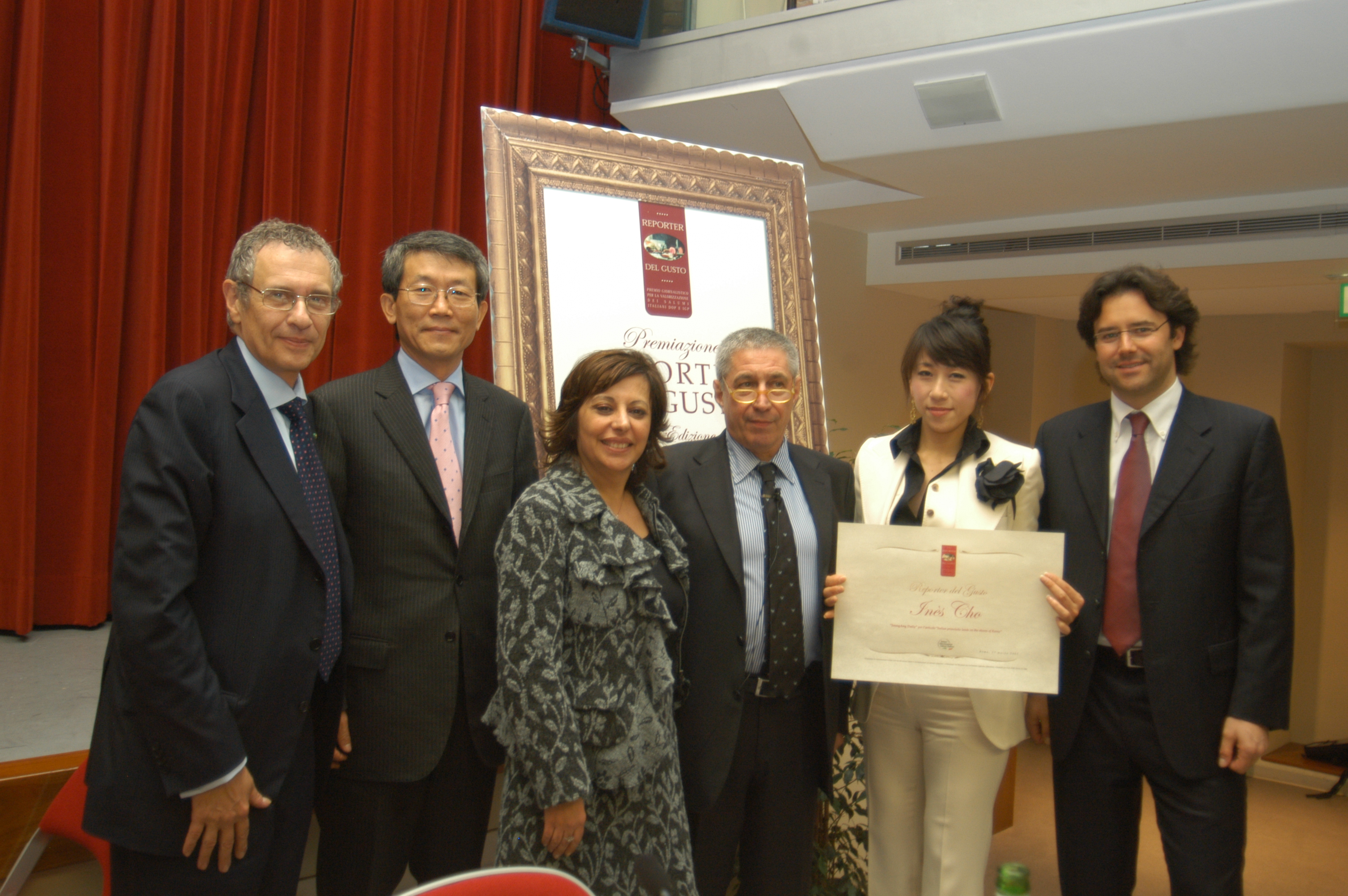 Nella terza edizione del Premio “Reporter del Gusto” IVSI ha inaugurato una sezione internazionale dedicata ai giornalisti della stampa estera e, per la prima occasione, si è scelta la Corea del Sud. La cerimonia di premiazione si è svolta a Roma il 15 marzo 2007, presso il meraviglioso spazio “Roma Eventi – Piazza di Spagna”, alla presenza dell’Ambasciatore italiano a Seoul, S.E. Massimo Andrea Leggeri, dell’Ambasciatore coreano in Italia, S.E. Cho Young-jai, e della D.ssa Laura La Torre del Ministero delle Politiche Agricole. Sono stati premiati 5 giornalisti coreani – Ines Cho, Lyoo Yang-Hee, Samia Mounts, Yoon Won Sup, Na Hye-Jin – e 5 giornalisti italiani: Isabella Egidi (Repubblica Salute), Alessandro Di Pietro (RAIUNO – Occhio alla Spesa), Aldo Tagliaferro (Gazzetta di Parma), Pier Luigi Franco (Ansa Agro Alimentare) e Sandro Marini (Radio RAIUNO). Al termine della cerimonia il “pluristellato” chef Fulvio Pierangelini ha interpretato i grandi salumi DOP e IGP con ricette inedite e originali.