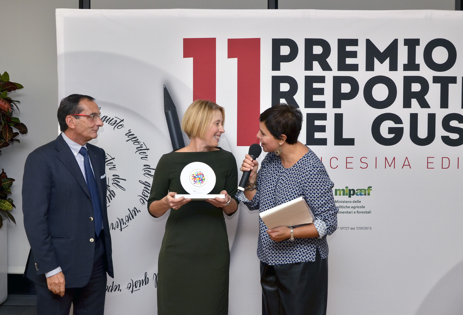 I primi dieci anni del Premio si sono celebrati a Milano, dove il 21 ottobre 2015 sono stati assegnati 7 premi ad altrettanti giornalisti e 2 premi speciali. Presso la ‘Terrazza Triennale – Osteria con vista’, dove è di casa lo chef Stefano Cerveni (1 stella Michelin), ha avuto luogo la serata di premiazione condotta ancora una volta da Francesca Romana Barberini. I premiati del 2015 sono stati: Antonio Silvestri, Rai Tre – TGR Europa; Carla Lombardi, Rai Uno – Buongiorno Benessere; Stefano Carboni, Radio Vaticana; Emanuele Scarci, Il Sole 24 Ore; Chiara Di Nardo, GustoSano; Luisa Contri, Italia Oggi; Massimo Montanari, La Repubblica. Alla serata, che celebrava anche il primo decennale del premio, era presente anche Carlo Cracco, ospite e premiato speciale come ‘Personaggio di Gusto 2015‘, che aveva tenuto a battesimo l’iniziativa nella sua prima edizione, occupandosi del menu della serata. L’altro Premio Speciale è stato ritirato da Philip Webster, in rappresentanza dell’Associazione Stampa estera di Milano.