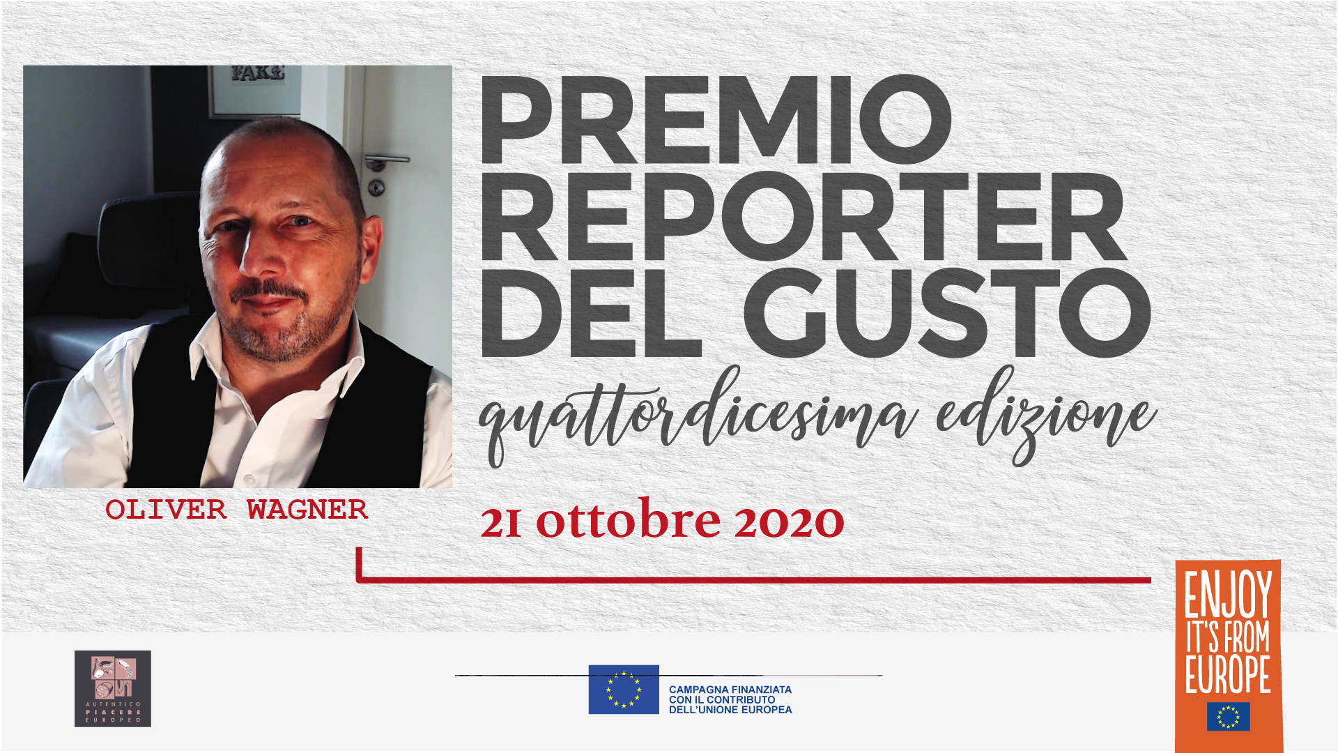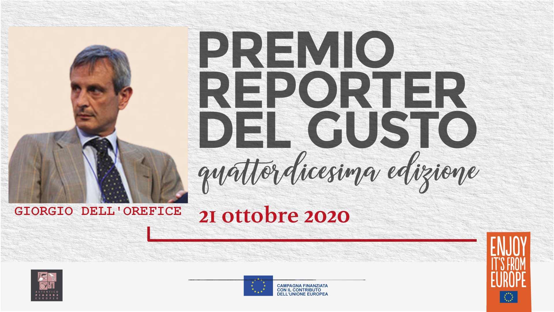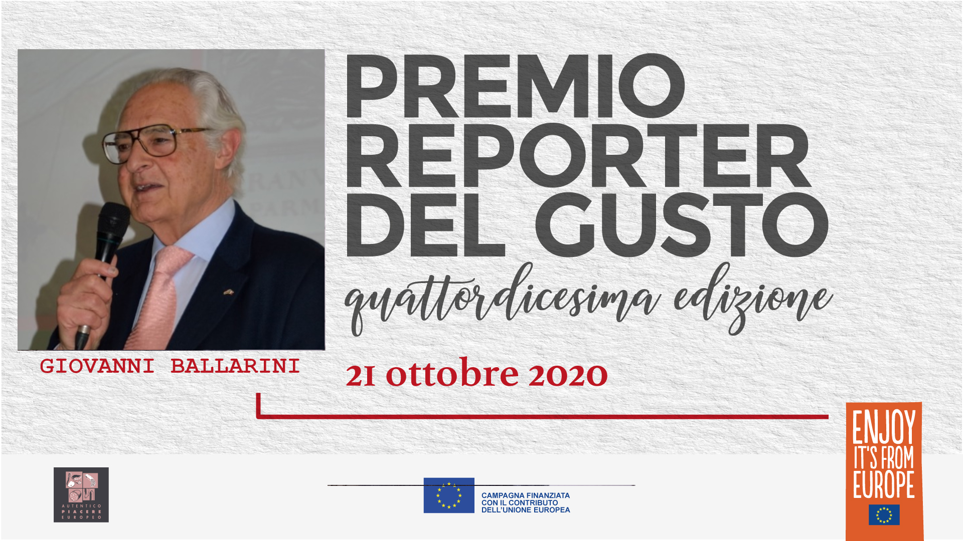 Si è tenuta mercoledì 21 ottobre 2020 in live streaming (a causa delle restrizioni legate alla pandemia da Covid-19) la quattordicesima edizione di Reporter del Gusto. Per l’edizione 2019/2020 il premio è stato assegnato a dieci giornalisti di stampa e TV – otto italiani e due tedeschi – che hanno raccontato e divulgato, attraverso il loro lavoro, le caratteristiche della salumeria italiana. Per la stampa quotidiana/periodica Giorgio dell’Orefice, Il Sole 24 Ore; Carlo Ottaviano, Il Messaggero; Giovanni Ballarini, Premio alla carriera. Per la sezione radio-tv il premio è andato a Pierluigi Pardo, Radio24; Federica De Vizia, Rai Parlamento e Dorotea Gambardella, Tg2 Costume e Società. Per la nuova sezione dedicata alla Sostenibilità, Alessandra Favaro, Osservaitalia.it e Valentina Zambon, Lombardia TV. Completano il quadro i premi della sezione stampa estera (Germania): Marielle Kreienborg, Quality Magazine e Oliver Wagner, Kochfreunde.com.