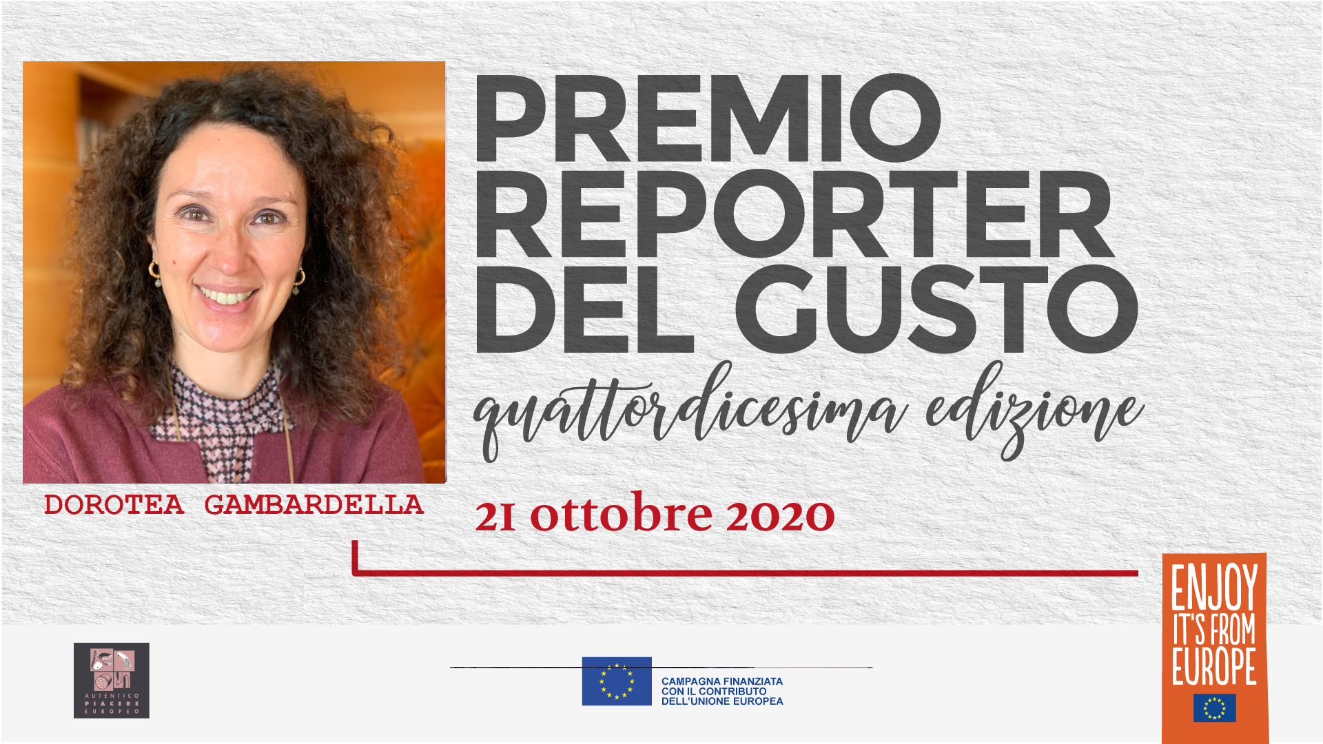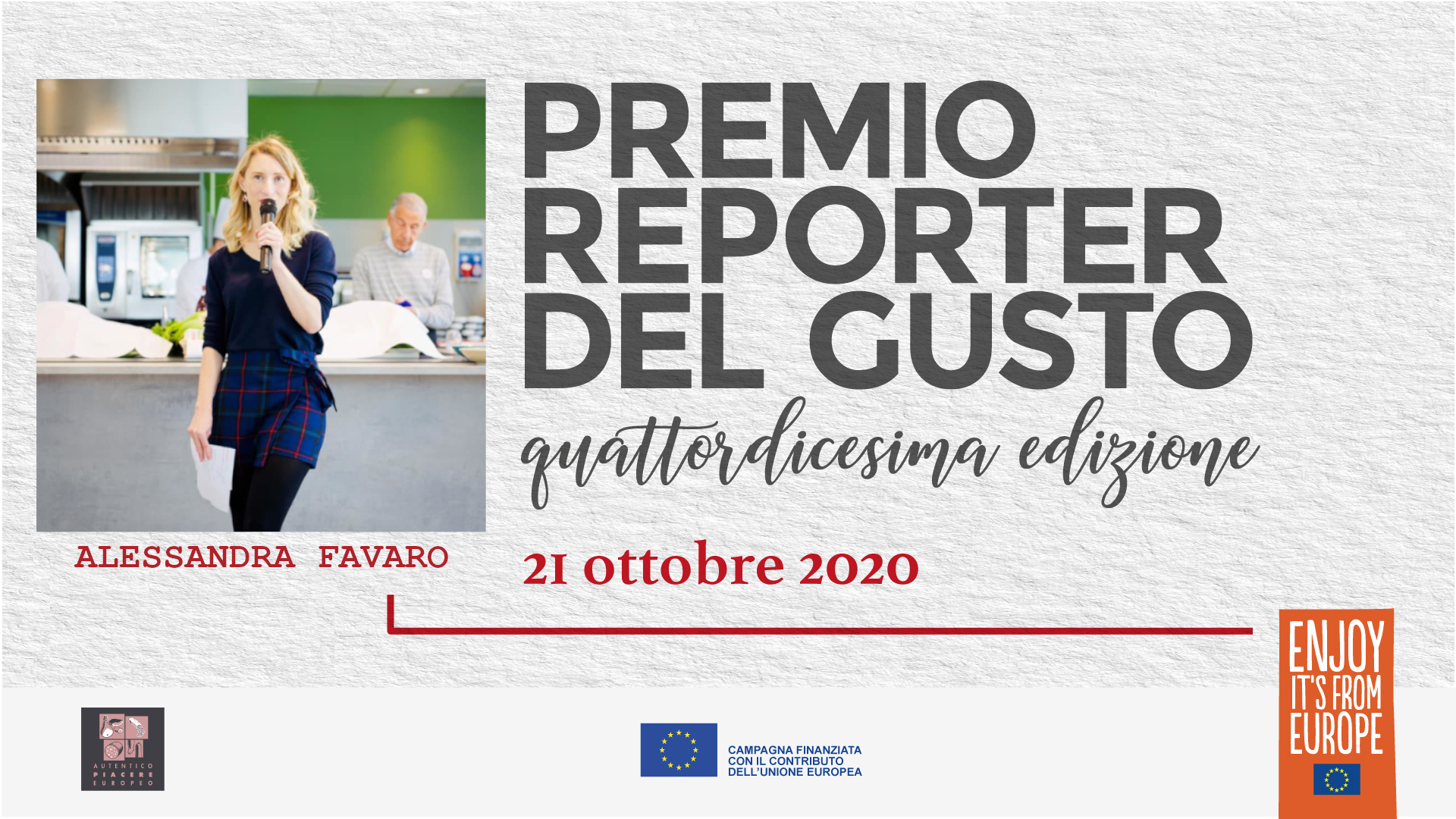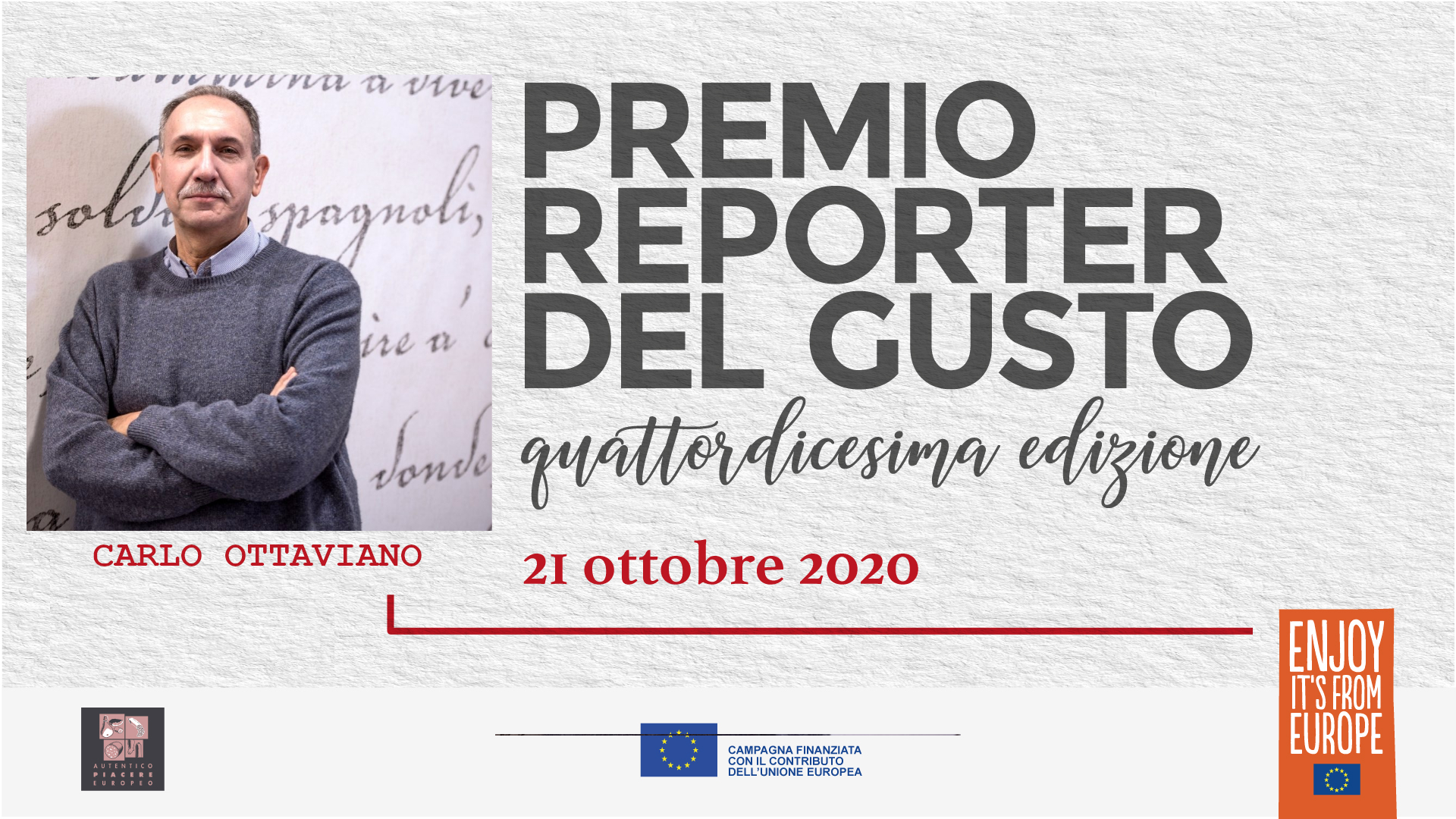 Si è tenuta mercoledì 21 ottobre 2020 in live streaming (a causa delle restrizioni legate alla pandemia da Covid-19) la quattordicesima edizione di Reporter del Gusto. Per l’edizione 2019/2020 il premio è stato assegnato a dieci giornalisti di stampa e TV – otto italiani e due tedeschi – che hanno raccontato e divulgato, attraverso il loro lavoro, le caratteristiche della salumeria italiana. Per la stampa quotidiana/periodica Giorgio dell’Orefice, Il Sole 24 Ore; Carlo Ottaviano, Il Messaggero; Giovanni Ballarini, Premio alla carriera. Per la sezione radio-tv il premio è andato a Pierluigi Pardo, Radio24; Federica De Vizia, Rai Parlamento e Dorotea Gambardella, Tg2 Costume e Società. Per la nuova sezione dedicata alla Sostenibilità, Alessandra Favaro, Osservaitalia.it e Valentina Zambon, Lombardia TV. Completano il quadro i premi della sezione stampa estera (Germania): Marielle Kreienborg, Quality Magazine e Oliver Wagner, Kochfreunde.com.