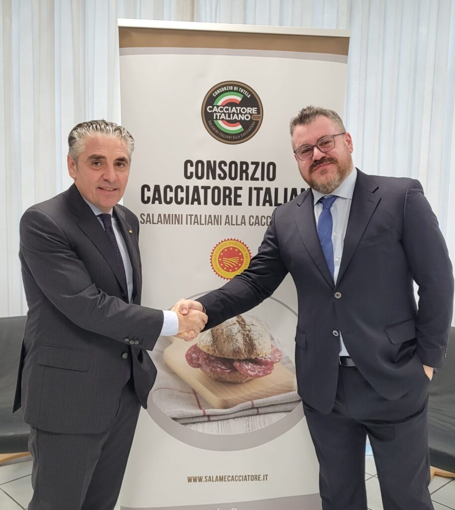 Costituitosi a maggio del 2003, con lo scopo di proteggere e promuovere i Salamini Italiani alla Cacciatora DOP, il Consorzio Cacciatore rappresenta oggi 22 aziende. I consorziati hanno un’etichettatura comune e uniforme (un tassello consortile di facile e d’immediata identificazione) per facilitare la riconoscibilità del prodotto per il consumatore. Il Consorzio ha la facoltà di agire su tutta la filiera del prodotto Salamini Italiani alla Cacciatora DOP, anche verso i soggetti non consorziati; dispone di poteri di vigilanza, grazie anche a propri “agenti vigilatori” in grado di contrastare abusi, imitazioni, atti di pirateria e contraffazione su tutto il territorio nazionale e non solo. È promotore di programmi per migliorare la qualità della produzione in termini di sicurezza igienico-sanitaria, caratteristiche chimiche, fisiche, organolettiche e nutrizionali del prodotto tutelato. Il riconoscimento del Consorzio da parte del Ministero delle politiche agricole alimentari e forestali – avvenuto nel 2005 – lo rende l’organo ufficialmente accreditato a svolgere le funzioni di informazione, tutela e valorizzazione dei Salamini Italiani alla Cacciatora DOP.