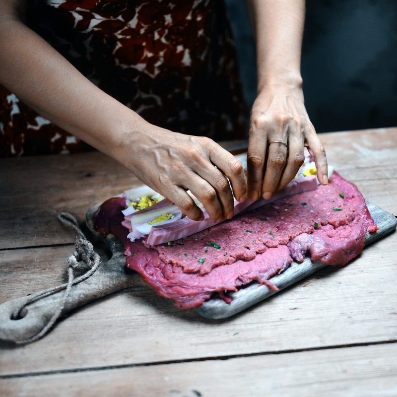 Ripieno di mortadella, lardo, provolone e uovo il Falsomagro è una grande piatto della festa: va messo in cantiere con calma e pazienza e merita una tavola ben apparecchiata. Una volta avvolto e legato con cura deve cuocere lentamente in un sugo vegetale che lo profuma e lo avvolge, ma quando alla fine lo slegherete e lo porterete in tavola fatevi un applauso: lo merita il Falsomagro e lo meritate voi!
